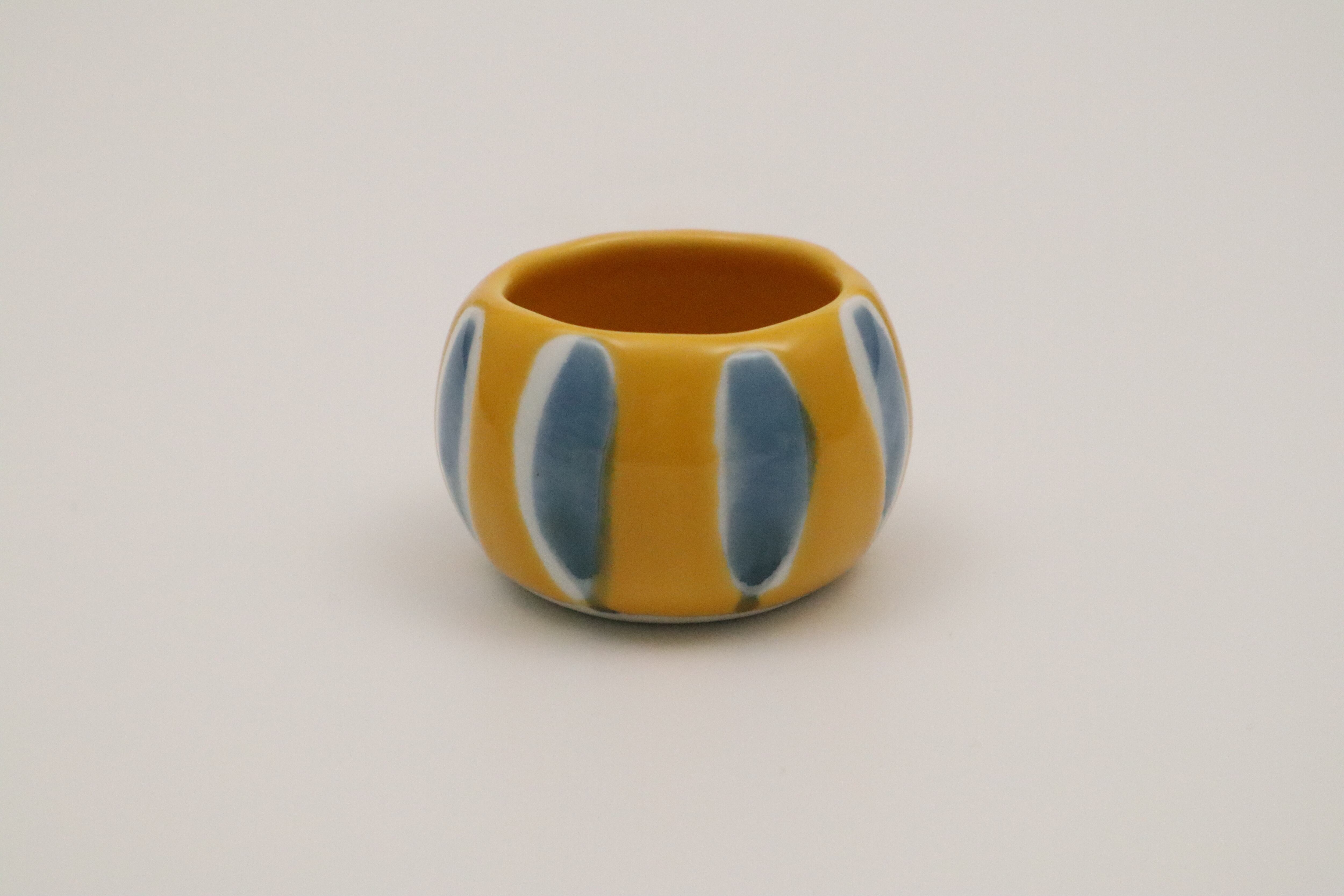 黄釉染付白抜き十草 ツボ型珍味 大