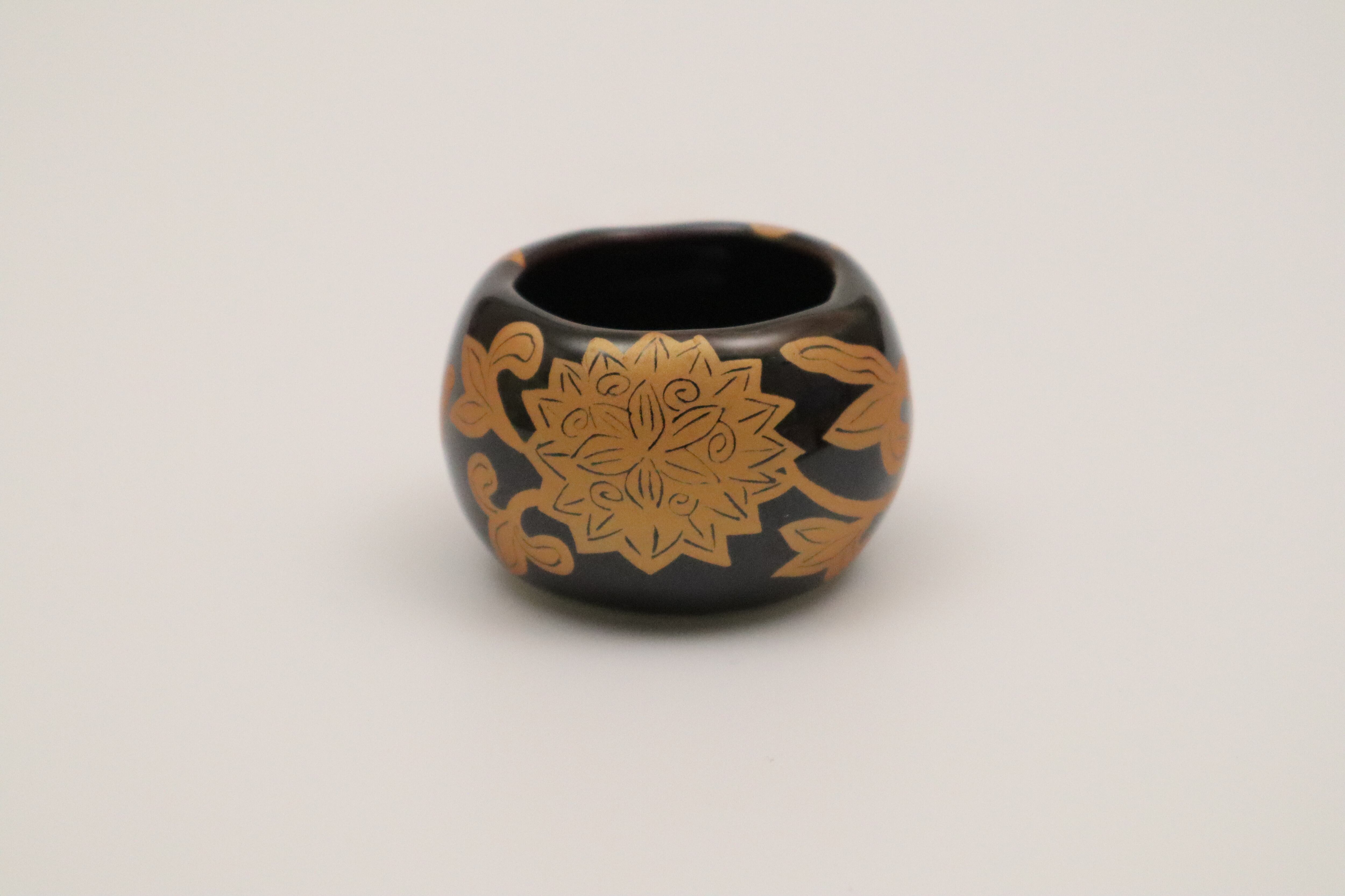 こげ茶釉雲母金唐草N ツボ型珍味 大