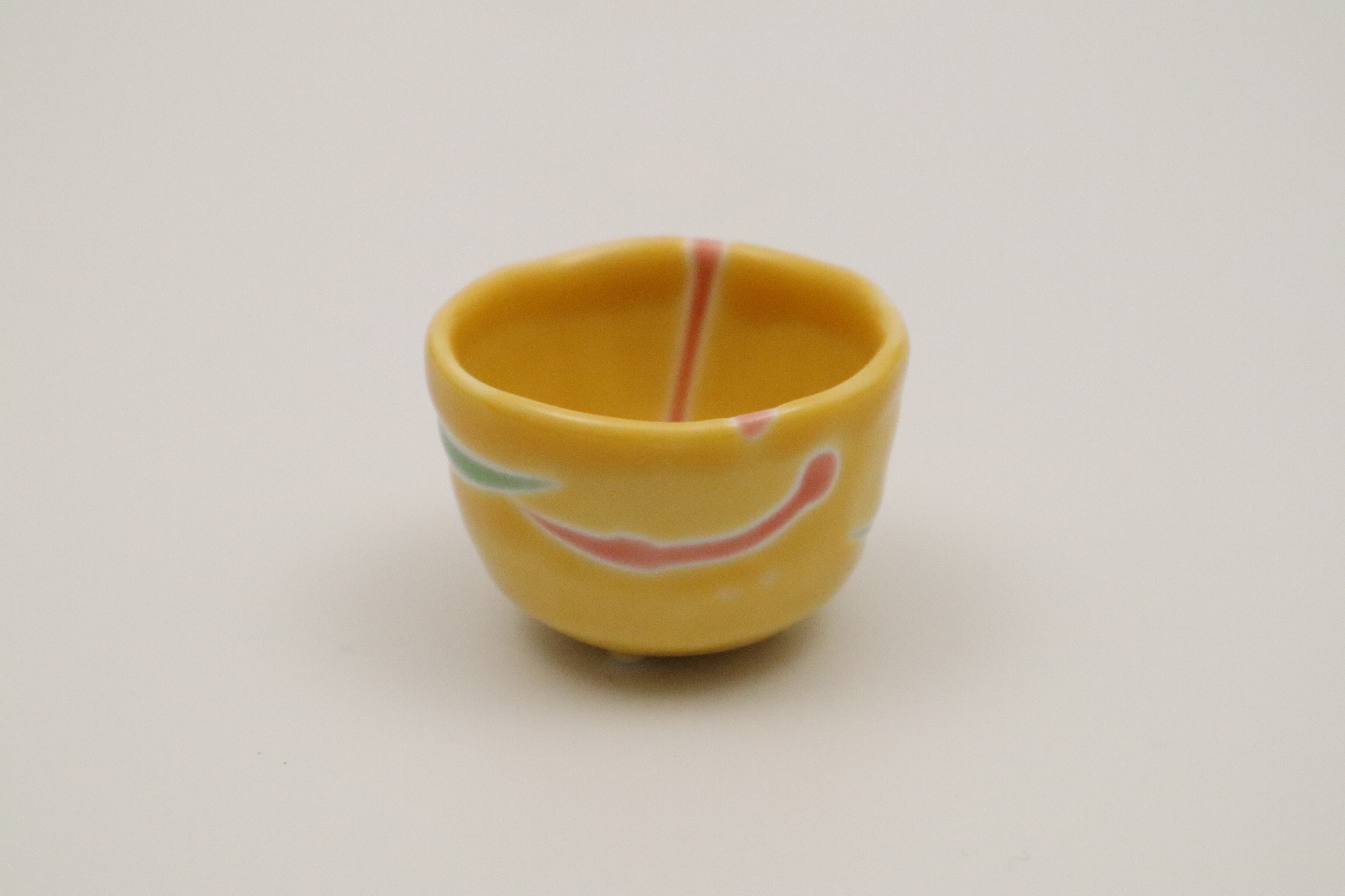 黄釉赤ヒワシブキ ガタ彫三ツ足珍味