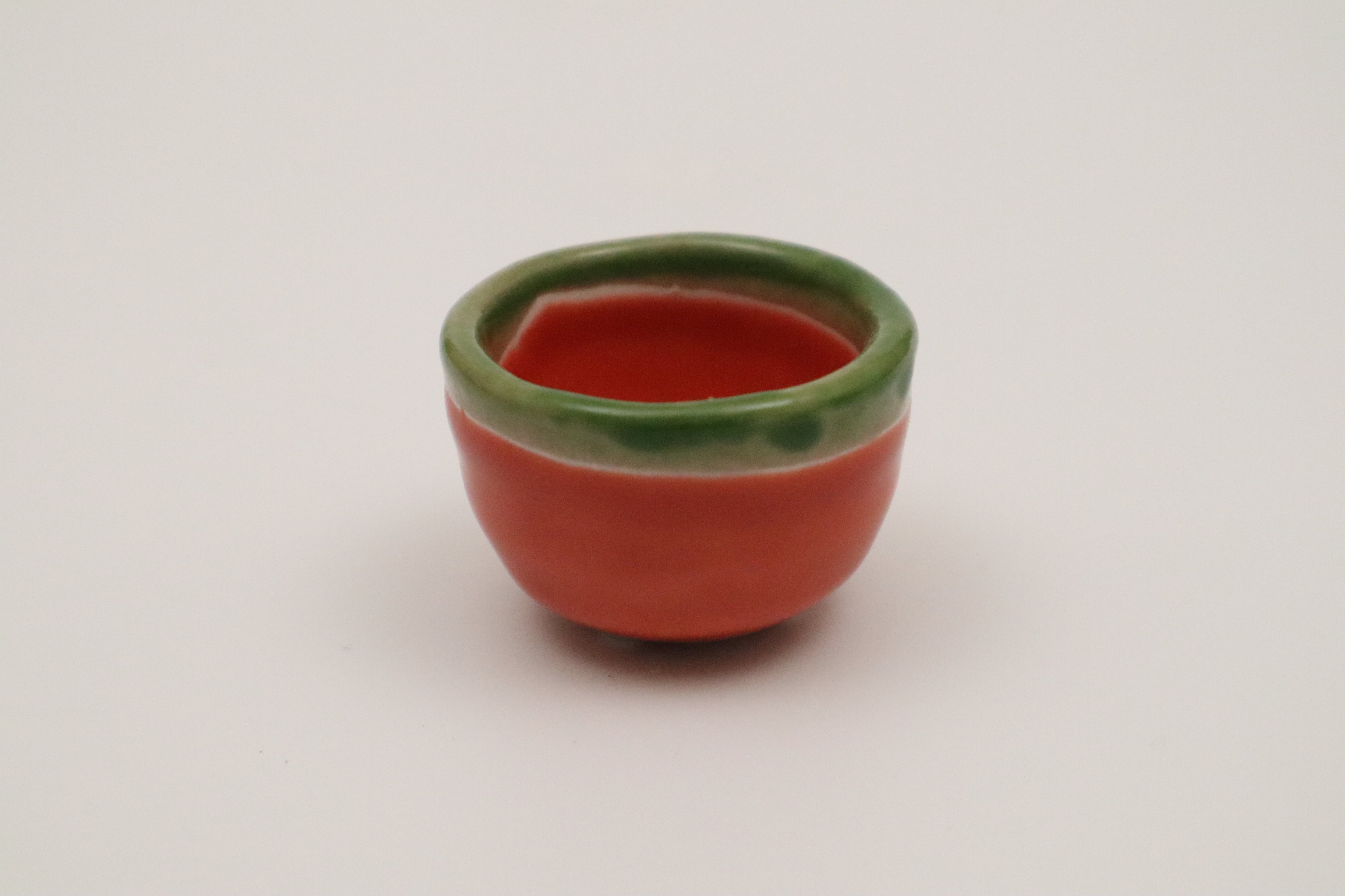 赤釉渕グリーン ガタ彫三ツ足珍味